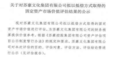 關于對蘇豪文化集團有限公司擬以抵償方式取得的固定資產市場價值評估結果的公示