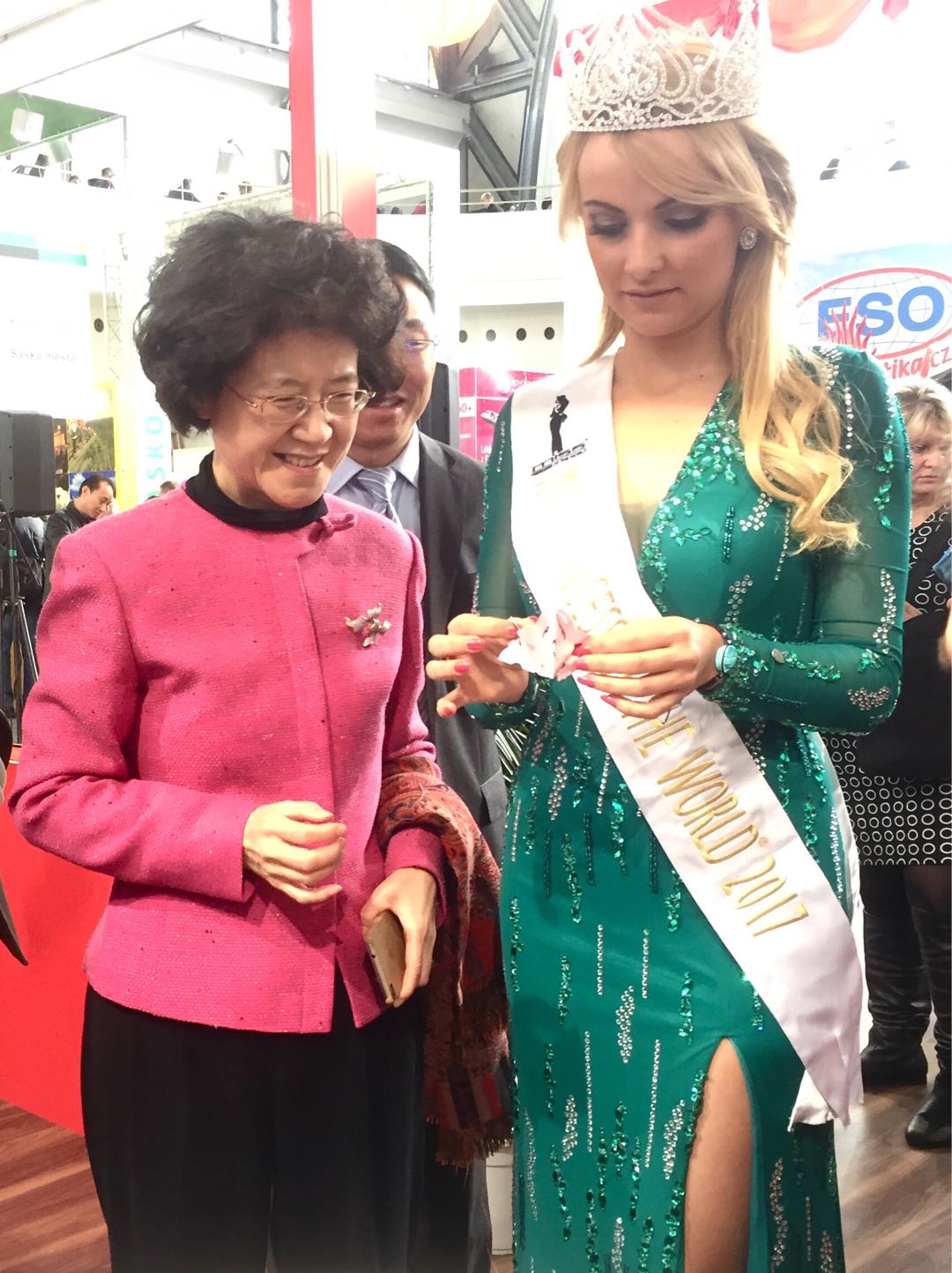 愛濤文化集團“歡樂春節(jié)·精彩江蘇”文化藝術(shù)展演團向與會賓客呈獻了精妙的江蘇非遺剪紙技藝、揚州木偶《變臉》絕活和高難度的嗩吶演奏《百鳥朝鳳》等節(jié)目,精彩的表演使中國展位在交易會上倍受矚目,前來參觀的捷克地方發(fā)展部部長多斯塔洛娃女士、捷克世界小姐代表等嘉賓對江蘇藝術(shù)展演展示駐足觀看,嘖嘖稱贊,同時前來視察的駐捷大使馬克卿女士、江蘇省政府及江蘇省文化廳領(lǐng)導(dǎo)對愛濤文化集團“歡樂春節(jié)·精彩江蘇”文藝演出和非遺展示予以高度評價和充分肯定,中國展臺還被主辦方授予“最佳展臺獎”和“最佳組織獎”。展演展示活動為深化捷中旅游領(lǐng)域交流與合作,共樹“一帶一路”旅游合作典范推波助瀾。