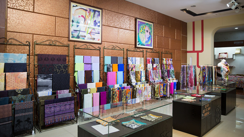 抵達(dá)盛澤后,蘇豪傳媒單鳳艷副總經(jīng)理帶隊(duì)參展商參觀非遺宋錦館,零距離觸摸APEC領(lǐng)袖風(fēng)采,分享國禮之尊。隨后參觀了先蠶祠、華佳絲博園,了解綢都絲韻水鄉(xiāng),感受中國紡織名鎮(zhèn),流行面料發(fā)布基地對絲綢的膜拜。