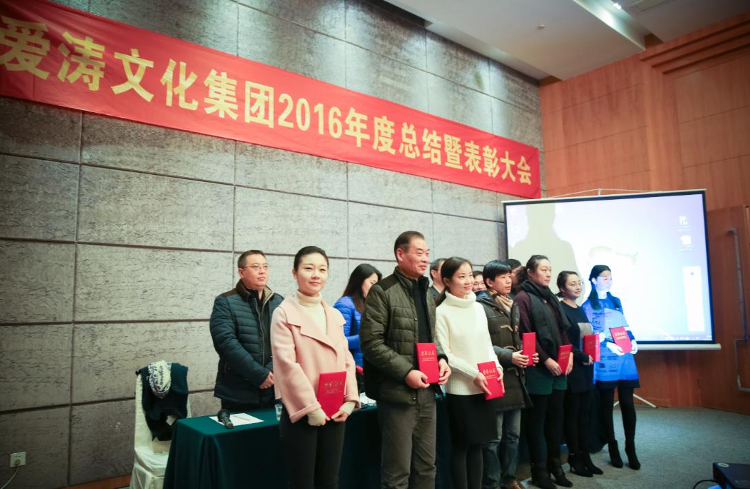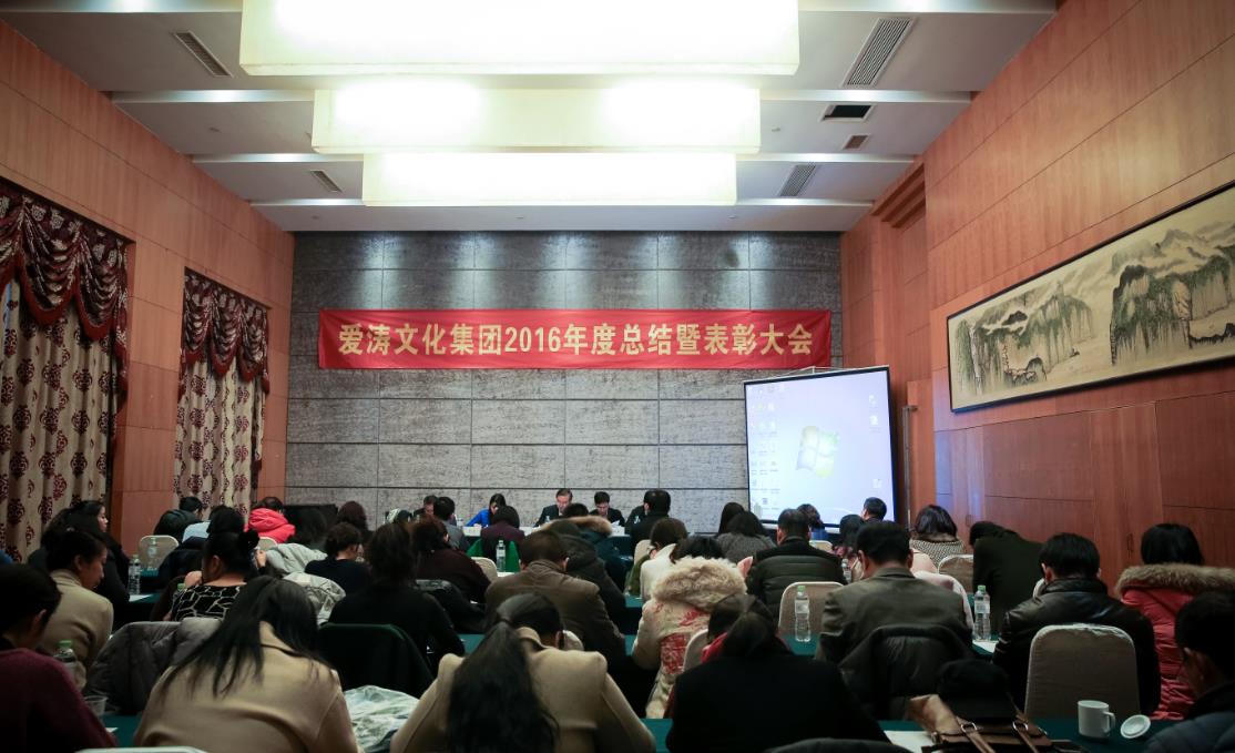 2017年1月19日上午,愛濤文化集團在南京江陵國際大酒店召開2016年度總結暨表彰大會。集團領導班子成員、各子公司班子成員及主要部門負責人、優秀員工、集團本部人員出席大會。集團常務副總經理陳云梅主持會議。